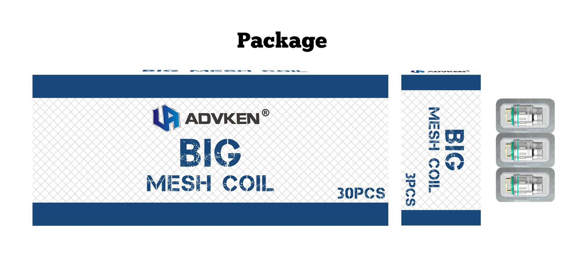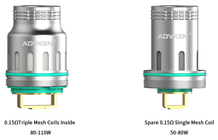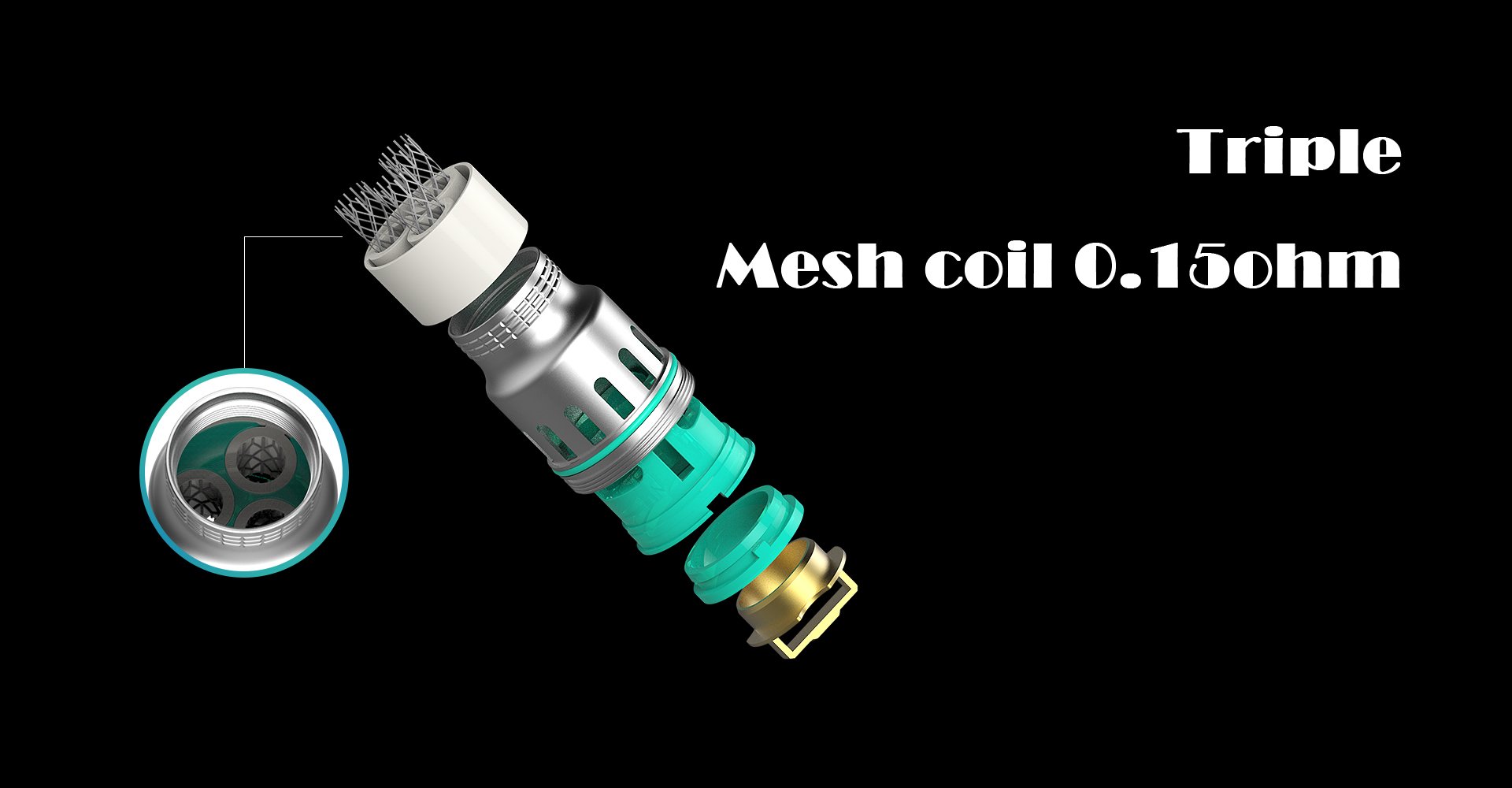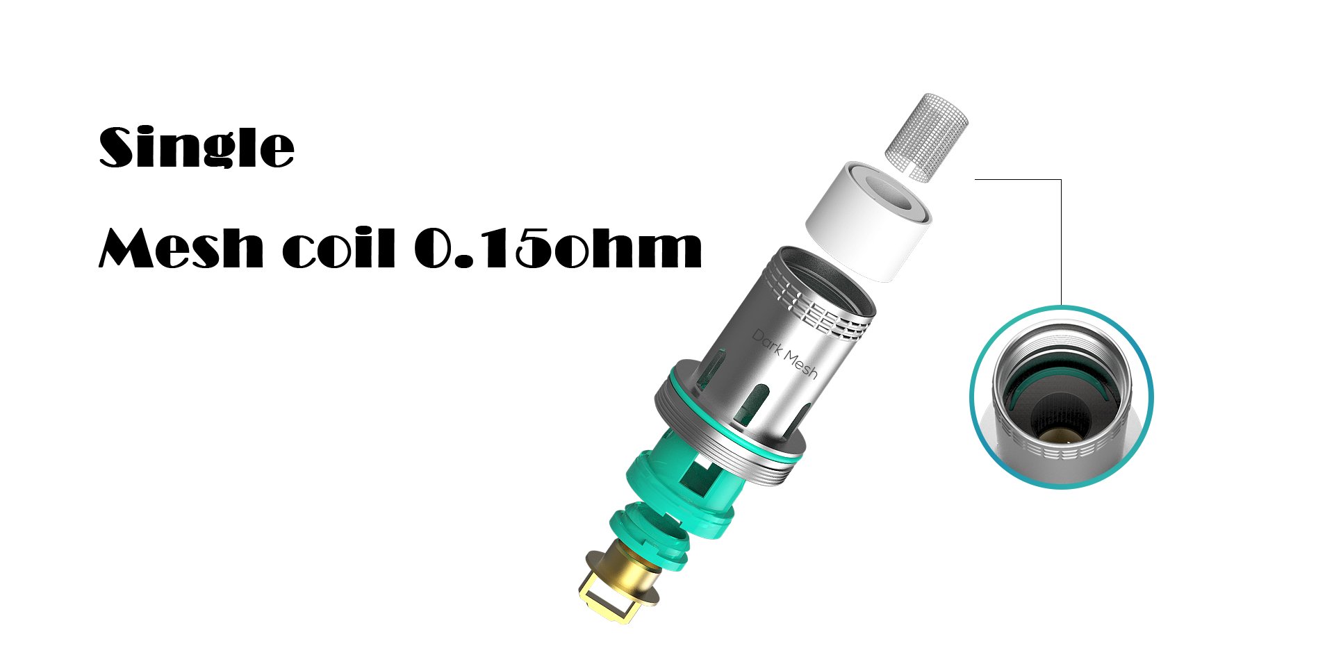 Dark Mesh Tank Coilget two types of coils, single mesh coil and triple mesh coil, all is 0.15ohm, Strong Flavorand work with high wattage.